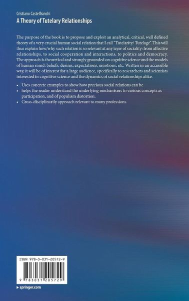 The purpose of the book is to propose and exploit an analytical, critical, well defined theory of a very crucial human social relation that I call "Tutelarity/ Tutelage". This will thus explain how/why such relation is so relevant at any layer of sociality: from affective relationships, to social cooperation and interactions, to politics and democracy. The approach is theoretical and strongly grounded on cognitive science and the models of human mind: beliefs, desires, expectations, emotions, etc. Written in an accessible way, it will be of interest for a large audience, specifically to researchers and scientists interested in cognitive science and the dynamics of social relationships alike.