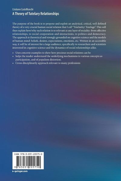 The purpose of the book is to propose and exploit an analytical, critical, well defined theory of a very crucial human social relation that I call "Tutelarity/ Tutelage". This will thus explain how/why such relation is so relevant at any layer of sociality: from affective relationships, to social cooperation and interactions, to politics and democracy. The approach is theoretical and strongly grounded on cognitive science and the models of human mind: beliefs, desires, expectations, emotions, etc. Written in an accessible way, it will be of interest for a large audience, specifically to researchers and scientists interested in cognitive science and the dynamics of social relationships alike.