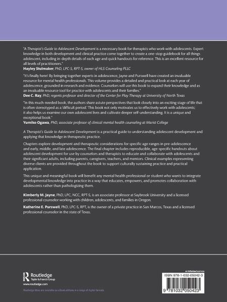 A Therapistâ s Guide to Adolescent Development is a practical guide to understanding adolescent development and applying developmental knowledge in therapeutic practice.
