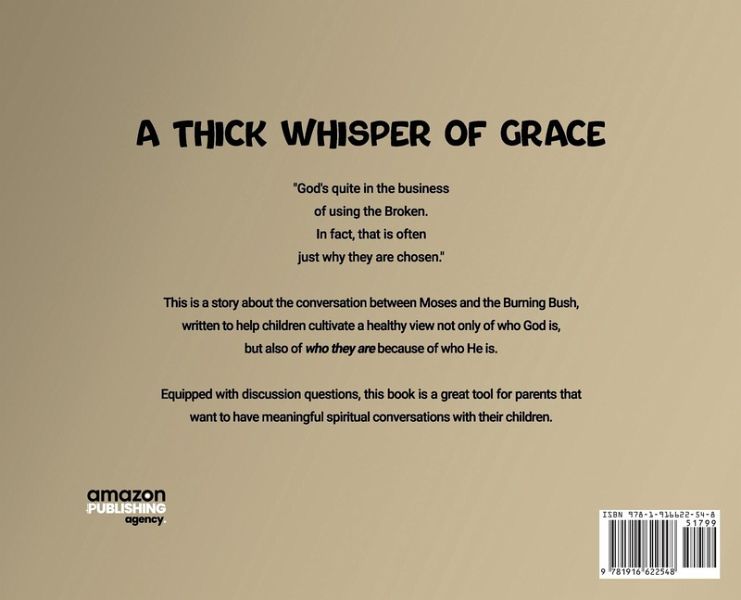 "God's quite in the businessof using the Broken.In fact, that is oftenjust why they are chosen." This is a story about the conversation between Moses and the Burning Bush. It was written to help children cultivate a healthy view not only of who God is, but also of who they are because of who He is. Equipped with discussion questions, this book is a great tool for parents looking to have meaningful spiritual conversations with their children.