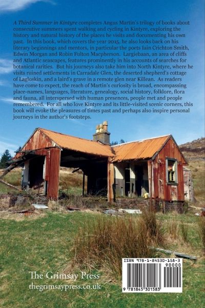 A Third Summer in Kintyre completes Angus Martin's trilogy of books about consecutive summers spent walking and cycling in Kintyre, exploring the history and natural history of the places he visits and documenting his own past. In this book, which covers the year 2015, he also looks back on his literary beginnings and mentors, in particular the poets Iain Crichton Smith, Edwin Morgan and Robin Fulton Macpherson. Largiebaan, an area of cliffs and Atlantic seascapes, features prominently in his accounts of searches for botanical rarities. But his journeys also take him into North Kintyre, where he visits ruined settlements in Carradale Glen, the deserted shepherd's cottage of Lagloskin, and a laird's grave in a remote glen near Killean. As readers have come to expect, the reach of Martin's curiosity is broad, encompassing place-names, languages, literature, genealogy, social history, folklore, flora and fauna, all interspersed with human presences, people met and people remembered. For all who love Kintyre and its little-visited scenic corners, this book will evoke the pleasures of times past and perhaps also inspire personal journeys in the author's footsteps.