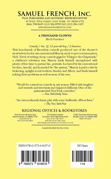 Herb Gardner Comedy Characters: 4 male, 1 female, 12 year-old boy 2 Interior scenes This benchmark of Broadway comedy produced one of the theatre's most beloved roles: unconventional Murray, uncle to precocious nephew, Nick. Tired of writing cheap comedy gags for "Chipper the Chipmunk," a children's television star, Murray finds himself unemployed with plenty of free time with which to pursue his...pursuits. Lectured by his conventional brother Arnold and hounded by "the system," Murray is paid a visit by bickering, uptight social workers, Sandra and Albert, and finds himself solving their problems as well as most of his own. "Would be a standout comedy in any season. Filled with laughter and warmth and sweetness and inspired daffiness. One of the quintessential New York comedies."-New York Daily News "An extraordinarily funny play with some brilliantly offbeat lines."-The New York Post