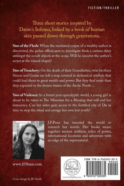 Three Large Print short stories inspired by Dante's Inferno, linked by a book of human skin passed down through generations. From New York Times and USA Today Bestselling Author J.F.Penn SINS OF THE FLESH: When the mutilated corpse of a wealthy author is discovered, the police officer sent to investigate finds a curious diary amongst the occult objects at the scene. Will he uncover the author's secret at the ruined chapel, and is he willing to pay the price that it demands? SINS OF TREACHERY: On the death of their Grandfather, twin brothers Simon and Gestas are left a map covered in alchemical symbols that could lead them to great wealth and power. But they find more than they expected in the frozen wastes of the Arctic north ... SINS OF VIOLENCE: In a brutal post-apocalyptic world, a young girl is about to be taken to The Minotaur for a Blessing that will end her innocence. Can her sister gain access to the fortified city of Dis in time to stop the ritual and avenge her own lost youth?