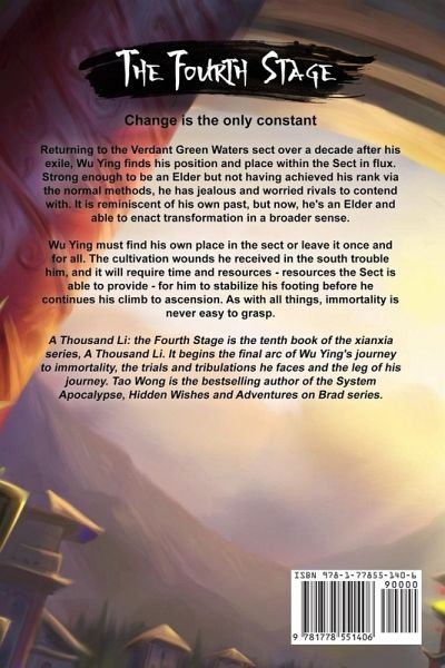 Change is the only constant Returning to the Verdant Green Waters sect over a decade after his exile, Wu Ying finds his position and place within the Sect in flux. Strong enough to be an Elder but not having achieved his rank via the normal methods, he has jealous and worried rivals to contend with. It is reminiscent of his own past, but now, he's an Elder and able to enact transformation in a broader sense. Wu Ying must find his own place in the sect or leave it once and for all. The cultivation wounds he received in the south trouble him, and it will require time and resources - resources the Sect is able to provide - for him to stabilize his footing before he continues his climb to ascension. As with all things, immortality is never easy to grasp. A Thousand Li: the Fourth Stage is the tenth book of the xianxia series, A Thousand Li. It begins the final arc of Wu Ying's journey to immortality, the trials and tribulations he faces and the leg of his journey. Tao Wong is the bestselling author of the System Apocalypse, Hidden Wishes and Adventures on Brad series.