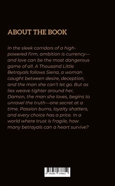 A Thousand Little Betrayals is a gripping romantic suspense about love, deception, and the fine line between passion and destruction. When Siena's affair with her powerful boss's husband threatens to unravel her relationship with Damon-the man she truly loves-secrets, lies, and dangerous temptations collide in a high-stakes game where trust is fragile and betrayal cuts deep.
