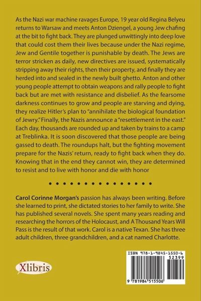 As the Nazi war machine ravages Europe, 19 year old Regina Belyeu returns to Warsaw and meets Anton Dziengel, a young Jew chafing at the bit to fight back. They are plunged unwittingly into deep love that could cost them their lives because under the Nazi regime, Jew and Gentile together is punishable by death. The Jews are terror stricken as daily, new directives are issued, systematically stripping away their rights, then their property, and finally they are herded into and sealed in the newly built ghetto. Anton and other young people attempt to obtain weapons and rally people to fight back but are met with resistance and disbelief. As the fearsome darkness continues to grow and people are starving and dying, they realize Hitlers plan to annihilate the biological foundation of Jewry. Finally, the Nazis announce a resettlement in the east. Each day, thousands are rounded up and taken by trains to a camp at Treblinka. It is soon discovered that those people are being gassed to death. The roundups halt, but the fighting movement prepare for The Nazis return, ready to fight back when they do. Knowing that in the end they cannot win, they are determined to resist and to live with honor and die with honor