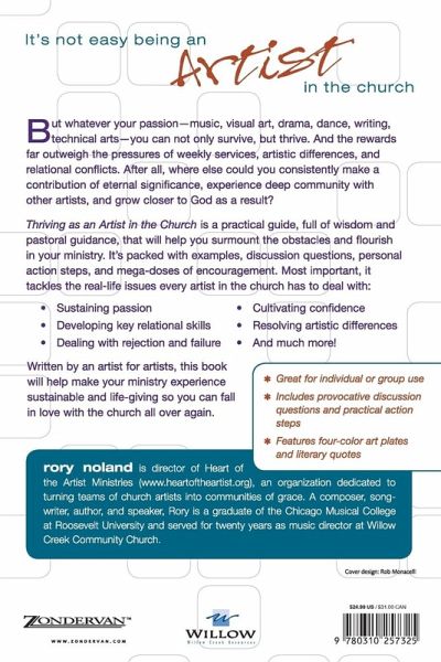 - Great for individual or group use - Includes provocative discussion questions and practical action steps - Features four-color art plates and literary quotes It's not easy being an Artist in the church. But whatever your passion--music, visual art, drama, dance, writing, technical arts--you can not only survive, but thrive. And the rewards far outweigh the pressures of weekly services, artistic differences, and relational conflicts. After all, where else could you consistently make a contribution of eternal significance, experience deep community with other artists, and grow closer to God as a result? Thriving as an Artist in the Church is a practical guide, full of wisdom and pastoral guidance, that will help you surmount the obstacles and flourish in your ministry. It's packed with examples, discussion questions, personal action steps, and mega-doses of encouragement. Most important, it tackles the real-life issues every artist in the church has to deal with: - Sustaining passion - Developing key relational skills - Dealing with rejection and failure - Cultivating confidence - Resolving artistic differences - And much more! Written by an artist for artists, this book will help make your ministry experience sustainable and life-giving so you can fall in love with the church all over again. Rory Noland is director of Heart of the Artist Ministries (www.heartoftheartist.org), an organization dedicated to turning teams of church artists into communities of grace. A composer, songwriter, author, and speaker, Rory is a graduate of the Chicago Musical College at Roosevelt University and served for twenty years as music director at Willow Creek Community Church.