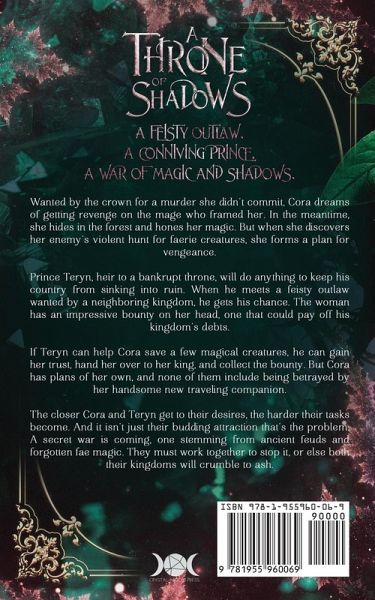 A feisty outlaw. A conniving prince. A war of magic and shadows. Wanted by the crown for a murder she didn't commit, Cora dreams of getting revenge on the mage who framed her. In the meantime, she hides in the forest and hones her magic. But when she discovers her enemy's violent hunt for faerie creatures, she forms a plan for vengeance. Prince Teryn, heir to a bankrupt throne, will do anything to keep his country from sinking into ruin. When he meets a feisty outlaw wanted by a neighboring kingdom, he gets his chance. The woman has an impressive bounty on her head, one that could pay off his kingdom's debts. If Teryn can help Cora save a few magical creatures, he can gain her trust, hand her over to her king, and collect the bounty. But Cora has plans of her own, and none of them include being betrayed by her handsome new traveling companion. The closer Cora and Teryn get to their desires, the harder their tasks become. And it isn't just their budding attraction that's the problem. A secret war is coming, one stemming from ancient feuds and forgotten fae magic. They must work together to stop it, or else both their kingdoms will crumble to ash. A Throne of Shadows is the first book in the Prophecy of the Forgotten Fae trilogy. Perfect for fans of Throne of Glass and Shadow and Bone. If you like breathtaking magic, fierce heroines, and enemies-to-lovers romance, then you'll love this epic fantasy tale.