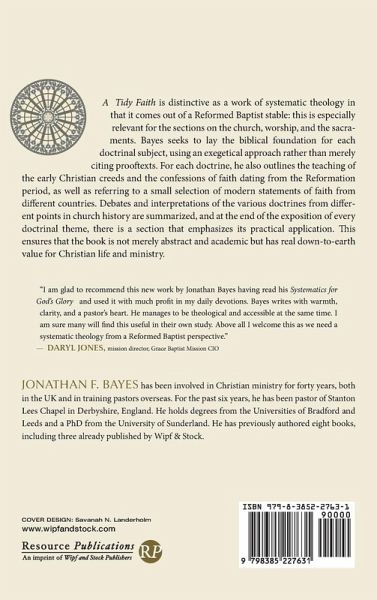 A Tidy Faith is distinctive as a work of systematic theology in that it comes out of a Reformed Baptist stable: this is especially relevant for the sections on the church, worship, and the sacraments. Bayes seeks to lay the biblical foundation for each doctrinal subject, using an exegetical approach rather than merely citing prooftexts. For each doctrine, he also outlines the teaching of the early Christian creeds and the confessions of faith dating from the Reformation period, as well as referring to a small selection of modern statements of faith from different countries. Debates and interpretations of the various doctrines from different points in church history are summarized, and at the end of the exposition of every doctrinal theme, there is a section that emphasizes its practical application. This ensures that the book is not merely abstract and academic but has real down-to-earth value for Christian life and ministry.