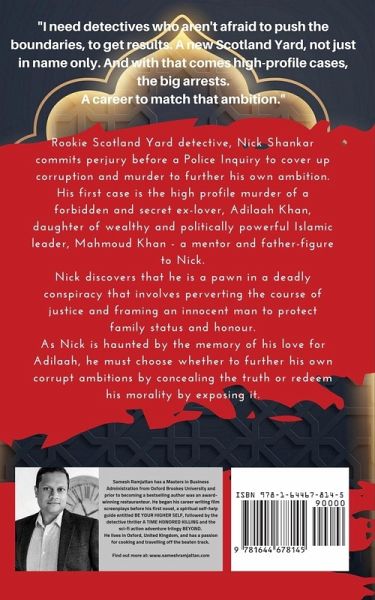 Rookie Scotland Yard detective, Nick Shankar commits perjury before a Police Inquiry to cover up corruption and murder to further his own ambition. His first case is the high profile murder of a forbidden and secret ex-lover, Adilaah Khan, daughter of wealthy and politically powerful Islamic leader, Mahmoud Khan - a mentor and father-figure to Nick. Nick discovers that he is a pawn in a deadly conspiracy that involves perverting the course of justice and framing an innocent man to protect family status and honour. As Nick is haunted by the memory of his love for Adilaah, he must choose whether to further his own corrupt ambitions by concealing the truth or redeem his morality by exposing it.