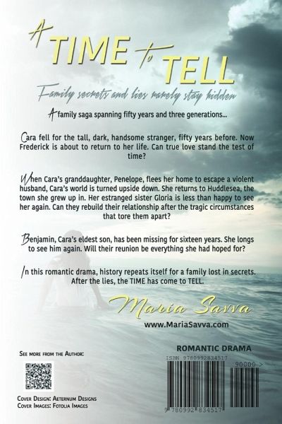 A family saga spanning fifty years and three generations... Cara fell for the tall, dark, handsome stranger, fifty years before. Now Frederick is about to return to her life. Can true love stand the test of time? When Cara's granddaughter, Penelope, flees her home to escape a violent husband, Cara's world is turned upside down. She returns to Huddlesea, the town she grew up in. Her estranged sister Gloria is less than happy to see her again. Can they rebuild their relationship after the tragic circumstances that tore them apart? Benjamin, Cara's eldest son, has been missing for sixteen years. She longs to see him again. Will their reunion be everything she had hoped for? In this romantic drama, history repeats itself for a family lost in secrets. After the lies, the TIME has come to TELL.
