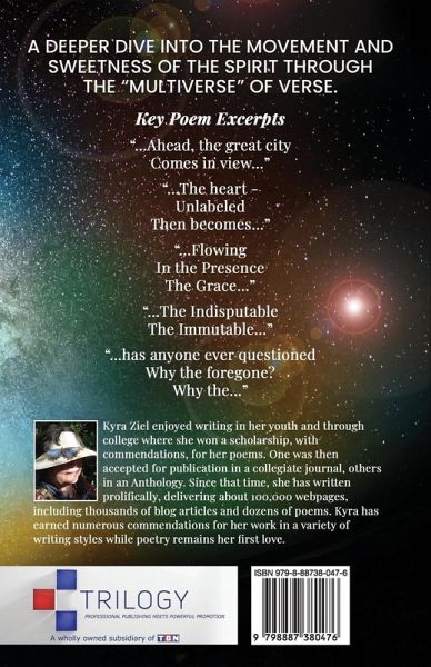 A deeper dive into the movement and sweetness of the spirit through the "multiverse" of verse. Key Poem Excerpts "Ahead, the great city Comes in view..." "...The heart - Unlabeled Then becomes..." "...Flowing In the Presence The Grace..." "...The Indisputable The Immutable..." "...has anyone ever questioned Why the foregone? Why the..."