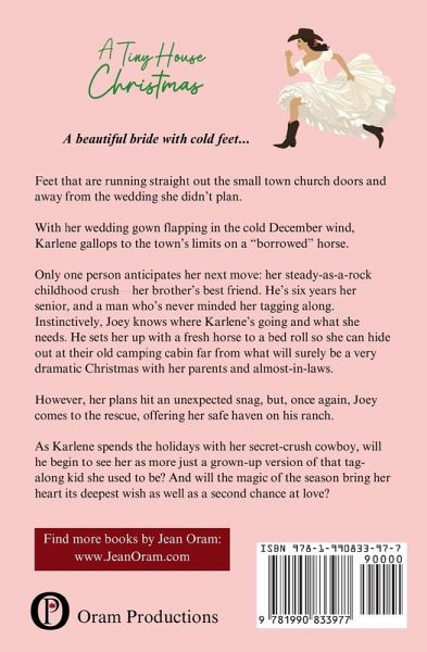 A beautiful Christmas bride with cold feet. Feet that are running straight out the small town church doors and away from the wedding she didn't plan. With her wedding gown flapping in the cold December wind, Karlene gallops out of town on a borrowed horse. Only one person anticipates her next move: her steady-as-a-rock childhood crush-her brother's best friend. He's six years her senior, and a man who's never minded her tagging along. Instinctively, Joey knows where Karlene's going and what she needs. He sets her up with a fresh horse to a bed roll so she can hide out at their old camping cabin far from what will surely be a very dramatic Christmas with her parents and almost-in-laws. However, her plans hit an unexpected snag, but, once again, Joey comes to the rescue, offering her safe haven on his ranch. As Karlene spends the holidays with her secret-crush cowboy, will he begin to see her as more just a grown-up version of that tag-along kid she used to be? And will the magic of the season bring her heart its deepest wish as well as a second chance at love?