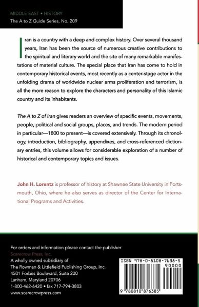 The A to Z of Iran is designed to give the reader a quick and understandable overview of specific events, movements, people, political and social groups, places, and trends. Through its extensive chronology, introduction, bibliography, appendixes, and more than double the number of cross-referenced dictionary entries as in the previous edition, the work allows for considerable exploration of a number of historical and contemporary topics and issues. In particular, the modern period, defined as 1800-present, is covered extensively.
