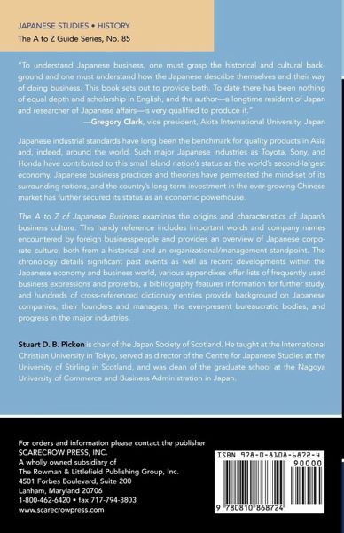 The A to Z of Japanese Business is an examination of the origins and characteristics of Japan's business culture. This handy reference book includes most of the important words or company names that foreign business people visiting Japan might encounter and provides an overview of Japanese corporate culture both from an historical standpoint and with reference to its most distinctive features as they affect organization and management. This is accomplished through its historical chronology, various appendixes offering lists of business expressions that are in daily use along with a selection of the most commonly used business proverbs, a bibliography, and hundreds of cross-referenced dictionary entries on Japanese companies, their founders and managers, the ever-present bureaucratic bodies, and progress in the major industries.