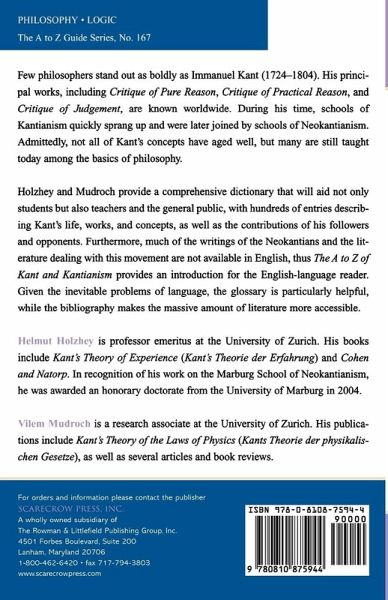 The A to Z of Kant and Kantianism provides a comprehensive dictionary that will aid not only students but also teachers and the general public, since it contains hundreds of entries describing Kant's life and works and explaining his concepts as well as the contributions of his followers (and also some opponents). Furthermore, much of the writings of the Neokantians, as well as the literature dealing with this movement, are not available in English, thus, this book provides an introduction to this phenomenon to the English-language reader.