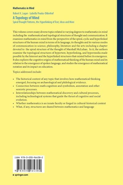 This volume covers many diverse topics related in varying degrees to mathematics in mind including the mathematical and topological structures of thought and communication. It examines mathematics in mind from the perspective of the spiral, cyclic and hyperlinked structures of the human mind in terms of its language, its thoughts and its various modes of communication in science, philosophy, literature and the arts including a chapter devoted to the spiral structure of the thought of Marshall McLuhan. In it, the authors examine the topological structures of hypertext, hyperlinking, and hypermedia made possible by the Internet and the hyperlinked structures that existed before its emergence. It also explores the cognitive origins of mathematical thinking of the human mind and its relation to the emergence of spoken language, and studies the emergence of mathematical notation and its impact on education.