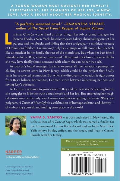 "A delicious culinary romance." ?Booklist From the author of A Taste of Sage comes another charming and engrossing novel in which a young woman must navigate her family's expectations, the demands of her job, a new love, and a secret about her magical identity. Larimar Cintrón works hard at three things: her job as brand manager for Beacon Café, a New York based corporate bakery chain; taking care of her parents and her abuela; and hiding that she's a ciguapa?a mythical creature of Dominican folklore with long, straight hair and backwards-facing feet. Larimar may only be a ciguapa on full moons, but she feels like an outsider in her family the rest of the month too. Her love of '90s punk rock music and style further sets her apart. But when her best friend introduces her to Ray, a bakery owner and fellow punk rock lover, Larimar thinks she may have finally found someone with whom she can be her true self. As Beacon's brand manager, Larimar oversees all new location openings, including its newest store in New Jersey, which could be the project that finally lands her a coveted promotion. But when she discovers the location is right across from Ray's bakery, Borrachitos, Larimar is torn between impressing her boss and saving Ray's business. As Larimar continues to grow closer to Ray and the new store's opening looms, she struggles to hide the truth about herself and her job. But embracing her magical nature may be the only way Larimar can have everything she wants. Witty and poignant, A Touch of Moonlight is a celebration of heritage, culture, and identity?of embracing yourself and finding your place in the world.
