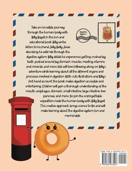 Take an incredible journey through the human body with Billy Bagel! In this fun and educational book, Billy writes letters to his friend Jelly Belly Jessie describing his wild ride through the Digestive System. Billy details his experiences getting crushed by teeth, pushed around by stomach muscles, meeting vitamins and minerals, and more. Kids will love following along on Billy's adventure while learning about all the different organs and processes involved in digestion. With cute illustrations and Billy's first-hand account, this book makes digestion accessible and entertaining. Children will gain a thorough understanding of the mouth, esophagus, stomach, small intestine, large intestine, liver, pancreas, and more. So join the unforgettable expedition inside the human body with Billy Bagel! "This creative approach brings science to life and will make learning about the digestive system fun and memorable."