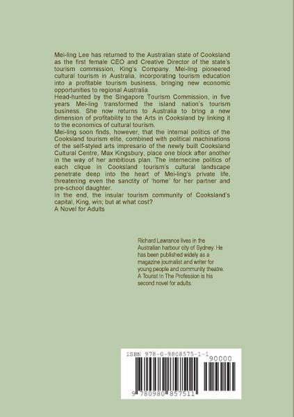 Mei-ling Lee pioneered cultural tourism in Australia, incorporating tourism education into a profitable tourism business, bringing new economic opportunities to regional Australia. Head-hunted by the Singapore Tourism Commission, in five years Mei-ling transformed the island nation's tourism business. She now returns to Australia to bring a new dimension of profitability to the Arts in Cooksland by linking it to the economics of cultural tourism. Mei-ling soon finds, however, that the internal politics of the Cooksland tourism elite place one block after another in the way of her ambitious plan. The internecine politics of each clique in Cooksland tourism's cultural landscape penetrate deep into the heart of Mei-ling's private life, threatening even the sanctity of 'home' for her partner and pre-school daughter. In the end, the insular tourism community of Cooksland's capital, King, win; but at what cost?