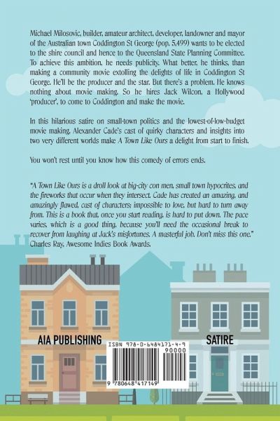 Michael Milosovic, builder, amateur architect, developer, landowner and mayor of the Australian town Coddington St George (pop. 5,499) wants to be elected to the shire council and hence to the Queensland State Planning Committee. To achieve this ambition, he needs publicity. What better, he thinks, than making a community movie extolling the delights of life in Coddington St George. He'll be the producer and the star. But there's a problem. He knows nothing about movie making. So he hires Jack Wilcon, a Hollywood ‘producer’, to come to Coddington and make the movie. In this hilarious satire on small-town politics and the lowest-of-low-budget movie making, Alexander Cade’s cast of quirky characters and insights into two very different worlds make A Town Like Ours a delight from start to finish. You won't rest until you know how this comedy of errors ends.