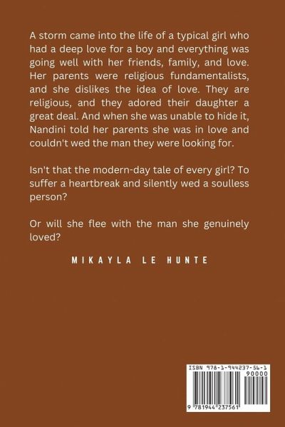A storm came into the life of a typical girl who had a deep love for a boy and everything was going well with her friends, family, and love. Marriage. Her parents were religious fundamentalists, and she dislikes the idea of love. They are religious, and they adored their daughter a great deal. And when she was unable to hide it, Nandini told her parents she was in love and couldn't wed the man they were looking for. The end of that. Her entire world abruptly turned upside down. Isn't that the modern-day tale of every girl? To suffer a heartbreak and silently wed a soulless person? Will she secretly wed the man her parents sought out for her because she can't bring her parents' names into disrepute? Or will she flee with the man she genuinely loved?