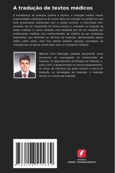 À semelhança da tradução jurídica e técnica, a tradução médica requer especialidade e distingue-se de outros tipos de tradução no sentido em que está diretamente relacionada com a saúde humana. A informação tem, portanto, de ser transferida de forma precisa e completa na tradução de textos médicos e, neste contexto, esta atividade tem de ser realizada por profissionais médicos com conhecimentos da matéria ou por tradutores experientes que dominem as técnicas de tradução. Apresentando alguns dados sobre estes, este livro aborda também algumas estratégias de tradução que se pensa serem úteis para os tradutores médicos.
