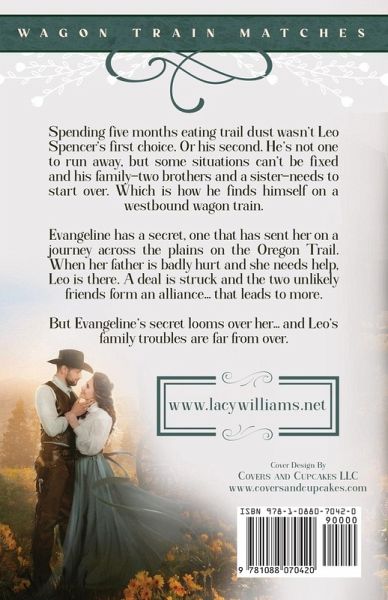 Spending five months eating trail dust wasn't Leo Spencer's first choice. Or his second. He's not one to run away, but some situations can't be fixed and his family-two brothers and a sister-needs to start over. Which is how he finds himself on a westbound wagon train. Evangeline has a secret, one that has sent her on a journey across the plains on the Oregon Trail. When her father is badly hurt and she needs help, Leo is there. A deal is struck and the two unlikely friends form an alliance... that leads to more. But Evangeline's secret looms over her... and Leo's family troubles are far from over.