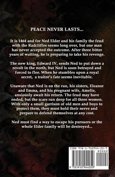 During the Wars of the Roses, peace never lasts… It is 1464. Ned Elder and his two sisters, Emma & Eleanor, have won a hard-fought peace and their feud with the Radcliffes seems long over, but one man never accepted the outcome. After three bitter years of waiting to destroy the Elders, a new ally provides him with a fresh opportunity for revenge. When Ned is summoned to confront a Lancastrian revolt by the new king, Edward of York, he finds his enemies are not just amongst the ranks of the rebels. Branded a traitor by his own commander, the Earl of Warwick, Ned is soon a wanted man in hostile territory and the price on his head only rises when he stumbles upon a royal secret. Meanwhile, Eleanor and Emma watch over Ned's pregnant wife, Amelie, with only a small garrison of old men and boys to protect them. The feud may have ended, but the scars run deep for all three women and they must hold their nerve and prepare to defend themselves at any cost. A condemned man, Ned must find a way to escape his pursuers or else the whole Elder family will be destroyed.