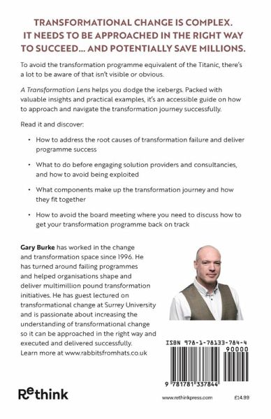 Gary Burke has worked in the change and transformation space since 1996. He has turned around failing programmes and helped organisations shape and deliver multimillion pound transformation initiatives. He has guest lectured on transformational change at Surrey University and is passionate about increasing the understanding of transformational change so it can be approached in the right way and executed and delivered successfully. Learn more at www.rabbitsfromhats.co.uk