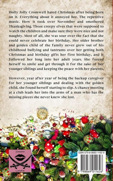 Holly Jolly Cromwell hated Christmas after being born on it. Everything about it annoyed her. The repetitive music. How it took over November and smothered Thanksgiving. Those creepy elves that were supposed to watch the children and make sure they were nice and not naughty. Most of all, she was sour over the fact that she could never celebrate her birthday. Her older brother and golden child of the family never grew out of his childhood bullying and tantrums over her getting both Christmas and birthday gifts her first birthday, and it followed her long into her adult years. She forced herself to smile and get through it for the sake of her younger siblings and keeping the peace with her parents. However, year after year of being the backup caregiver for her younger siblings and dealing with the golden child, she found herself starting to slip. A chance meeting at a club leads her into the arms of a man who has the missing pieces she never knew she lost.