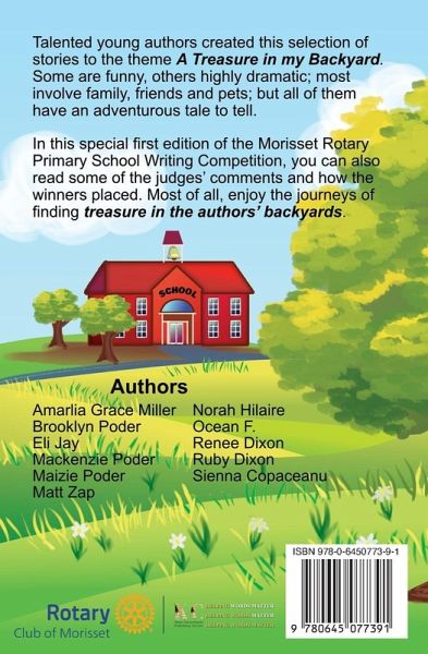 Talented young authors created this selection of stories to the theme A treasure in my backyard. Some are funny, others highly dramatic; most involve family, friends and pets; but all of them have an adventurous tale to tell. In this special first edition of the Morisset Rotary Primary School Writing Competition, you can also read some of the judges' comments and how the winners placed. Most of all, enjoy the journeys of finding treasure in the authors' backyards.