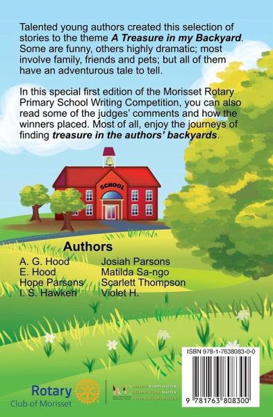 Talented young authors created this selection of stories to the theme A treasure in my backyard. Some are funny, others highly dramatic; most involve family, friends and pets; but all of them have an adventurous tale to tell. In this special first edition of the Morisset Rotary Primary School Writing Competition, you can also read some of the judges' comments and how the winners placed. Most of all, enjoy the journeys of finding treasure in the authors' backyards.