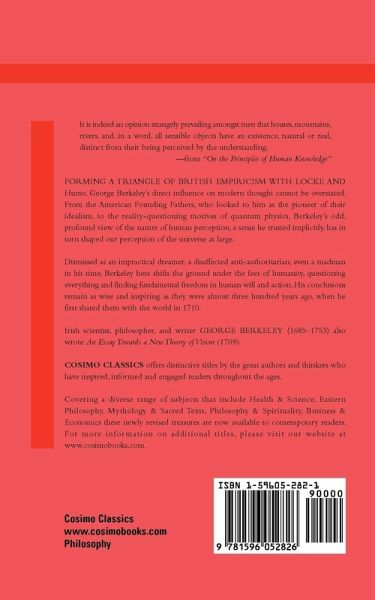 It is indeed an opinion strangely prevailing amongst men that houses, mountains, rivers, and, in a word, all sensible objects have an existence, natural or real, distinct from their being perceived by the understanding. -from "On the Principles of Human Knowledge" Forming a triangle of British empiricism with Locke and Hume, George Berkeley's direct influence on modern thought cannot be overstated. From the American Founding Fathers, who looked to him as the pioneer of their idealism, to the reality-questioning motives of quantum physics, Berkeley's odd, profound view of the nature of human perception, a sense he trusted implicitly, has in turn shaped our perception of the universe at large. Dismissed as an impractical dreamer, a disaffected anti-authoritarian, even a madman in his time, Berkeley here shifts the ground under the feet of humanity, questioning everything and finding fundamental freedom in human will and action. His conclusions remain as wise and inspiring as they were almost three hundred years ago, when he first shared them with the world in 1710. Irish scientist, philosopher, and writer GEORGE BERKELEY (1685-1753) also wrote An Essay Towards a New Theory of Vision (1709).