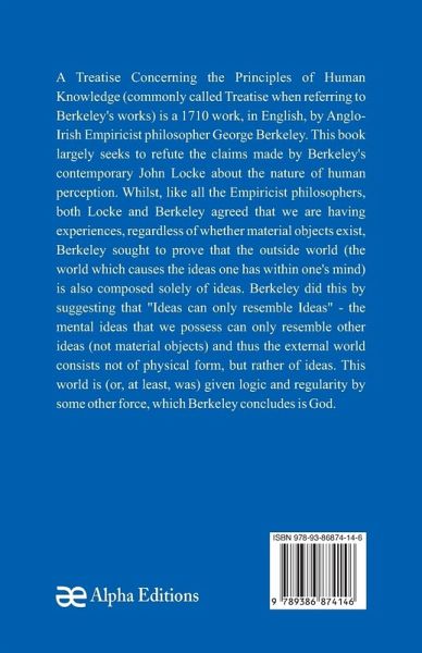 A Treatise Concerning the Principles of Human Knowledge (commonly called Treatise when referring to Berkeley's works) is a 1710 work, in English, by Anglo-Irish Empiricist philosopher George Berkeley. This book largely seeks to refute the claims made by Berkeley's contemporary John Locke about the nature of human perception. Whilst, like all the Empiricist philosophers, both Locke and Berkeley agreed that we are having experiences, regardless of whether material objects exist, Berkeley sought to prove that the outside world (the world which causes the ideas one has within one's mind) is also…mehr