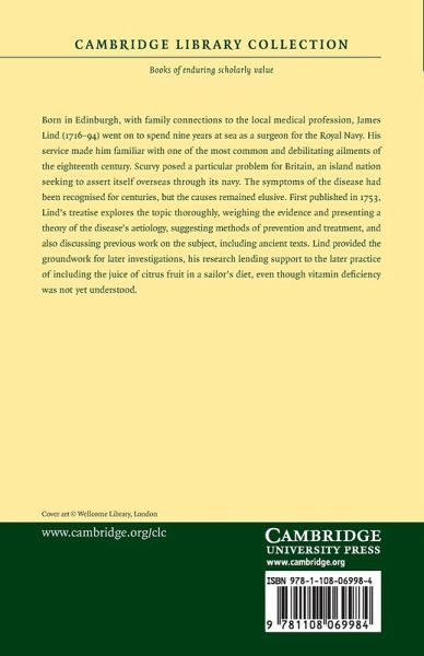 Born in Edinburgh, with family connections to the local medical profession, James Lind (1716-94) went on to spend nine years at sea as a surgeon for the Royal Navy. His service made him familiar with one of the most common and debilitating ailments of the eighteenth century. Scurvy posed a particular problem for Britain, an island nation seeking to assert itself overseas through its navy. The symptoms of the disease had been recognised for centuries, but the causes remained elusive. First published in 1753, Lind's treatise explores the topic thoroughly, weighing the evidence and presenting a theory of the disease's aetiology, suggesting methods of prevention and treatment, and also discussing previous work on the subject, including ancient texts. Lind provided the groundwork for later investigations, his research lending support to the later practice of including the juice of citrus fruit in a sailor's diet, even though vitamin deficiency was not yet understood.