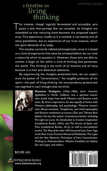 Massimo Scaligero (1906-1980) was born Antonio Scabelloni in Veroli (Frosinone), Italy. He was a contemporary Italian spiritual master who drank deeply from both Western and Eastern traditions. By direct experience, he was equally at home with Western philosophy and psychology, Western esotericism (Rosicrucianism, Templarism, and Anthroposophy) and Eastern meditative practices (Zen and Tibetan Buddhism). He was the author of numerous books, including (in Italian, untranslated): The Way of the Solar Will; Immortal Love; Yoga, Meditation, Magic; From Yoga to the Rose Cross; Practical Manual of Meditation; The Logos and the New Mysteries; Psychotherapy; Techniques of Inner Concentration; Healing with Thinking; Meditation and Miracles; Thinking as Antimaterialism; Western Kundalini; Isis Sophia; and Zen and Logos.
