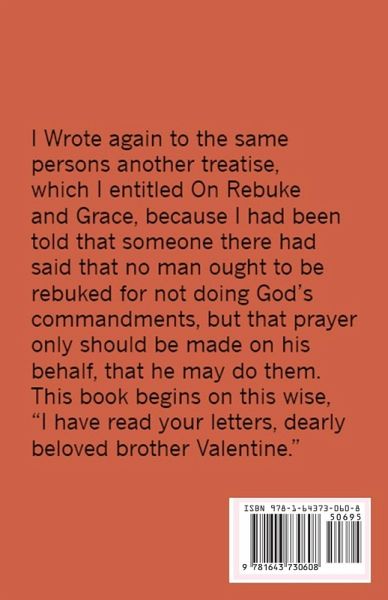 I Wrote again to the same persons another treatise, which I entitled On Rebuke and Grace, because I had been told that someone there had said that no man ought to be rebuked for not doing God's commandments, but that prayer only should be made on his behalf, that he may do them. This book begins on this wise, "I have read your letters, dearly beloved brother Valentine."