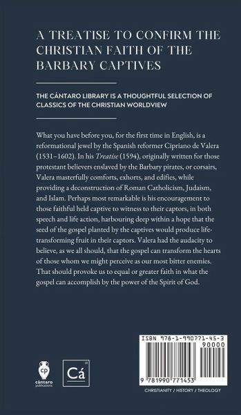What you have before you, for the first time in English, is a reformational jewel by the Spanish reformer Cipriano de Valera (1531-1602). In his Treatise (1594), originally written for those protestant believers enslaved by the Barbary pirates, or corsairs, Valera masterfully comforts, exhorts, and edifies, while providing a deconstruction of Roman Catholicism, Judaism, and Islam. Perhaps most remarkable is his encouragement to those faithful held captive to witness to their captors, in both speech and life action, harbouring deep within a hope that the seed of the gospel planted by the captives would produce life-transforming fruit in their captors. Valera had the audacity to believe, as we all should, that the gospel can transform the hearts of those whom we might perceive as our most bitter enemies. That should provoke us to equal or greater faith in what the gospel can accomplish by the power of the Spirit of God.