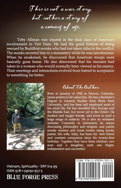 This is not a war story, but rather a story of a coming of age. Toby Allman was injured in the final days of America's involvement in Viet Nam. He had the good fortune of being rescued by Buddhist monks who had not taken sides in the conflict. The monks secreted him in a monastery while he was unconscious. When he awakened, he discovered that American troops were basically gone home. He also discovered that his rescuers had taken in a woman who would normally been viewed as his enemy. Their meetings and interactions evolved from hatred to acceptance to something far better.