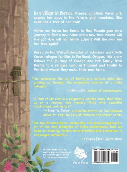 In a village in Burma, Posada, an ethnic Karen girl, spends her days in the forests and mountains. She even has a tree of her own! When war forces her family to flee, Posada goes on a journey to find a new home and a new tree. Where will she go? How will her family adjust? Will she ever see her tree again? Based on Nui Wilson's decades of volunteer work with Karen refugee families in Portland, Oregon, this story follows the journey of Posada and her family from Burma to a refugee camp in Thailand and finally to Portland where they make their new home.