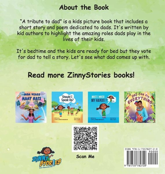 "A tribute to dad" is a kid's picture book that includes a short story and poem dedicated to dads. It's written by kid authors to highlight the amazing roles dads play in the lives of their kids. It's bedtime and the kids are ready for bed, but they vote for dad to tell a story. Let's see what dad comes up with.