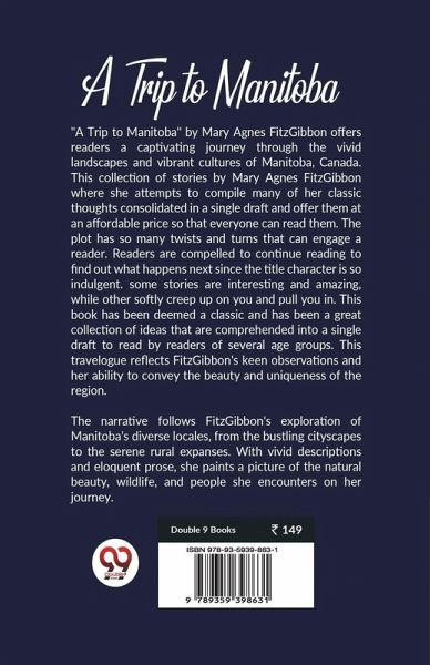 "A Trip to Manitoba" by Mary Agnes FitzGibbon offers readers a captivating journey through the vivid landscapes and vibrant cultures of Manitoba, Canada. This collection of stories by Mary Agnes FitzGibbon where she attempts to compile many of her classic thoughts consolidated in a single draft and offer them at an affordable price so that everyone can read them. The plot has so many twists and turns that can engage a reader. Readers are compelled to continue reading to find out what happens next since the title character is so indulgent. some stories are interesting and amazing, while other softly creep up on you and pull you in. This book has been deemed a classic and has been a great collection of ideas that are comprehended into a single draft to read by readers of several age groups. This travelogue reflects FitzGibbon's keen observations and her ability to convey the beauty and uniqueness of the region. The narrative follows FitzGibbon's exploration of Manitoba's diverse locales, from the bustling cityscapes to the serene rural expanses. With vivid descriptions and eloquent prose, she paints a picture of the natural beauty, wildlife, and people she encounters on her journey.