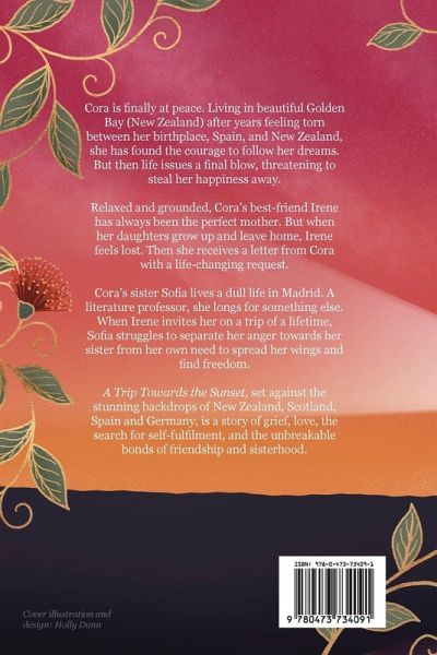 Cora is finally at peace. Living in beautiful Golden Bay (New Zealand) after years feeling torn between her birthplace, Spain, and New Zealand, she has found the courage to follow her dreams. But then life issues a final blow, threatening to steal her happiness away. Relaxed and grounded, Cora's best-friend Irene has always been the perfect mother. But when her daughters grow up and leave home, Irene feels lost. Then she receives a letter from Cora with a life-changing request. Cora's sister Sofia lives a dull life in Madrid. A literature professor, she longs for something else. When Irene invites her on a trip of a lifetime, Sofia struggles to separate her anger towards her sister from her own need to spread her wings and find freedom. A Trip Towards the Sunset, set against the stunning backdrops of New Zealand, Scotland, Spain and Germany, is a story of grief, love, the search for self-fulfilment, and the unbreakable bonds of friendship and sisterhood.