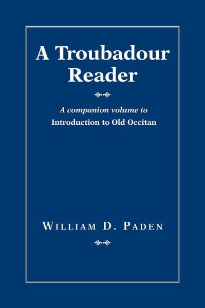 Occitan lyric poetry for language learners A Troubadour Reader, a supplement to William D. Paden's Introduction to Old Occitan, provides a diverse selection of thirty medieval lyric poems in Occitan for language learners. Featuring poems by women, poems composed especially early or especially late in the language's literary use, and poems that feature Occitan in contact with other languages, the book highlights the range and wealth of medieval Occitan lyric poetry. Each poem is presented with a brief introduction, glosses on the text, and notes after each stanza. The volume also includes a section on basic Occitan grammar, a list of manuscripts, bibliographical references, and an index.