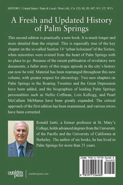 This is a revised and enlarged version of A Troubled Oasis: A Critical History of Palm Springs. The key chapter on the tragedy of the Section Fourteen so-called "urban holocaust," when minorities were evicted from the center of the city in the 1960s, has been dramatically updated in light of a tranche of new, revelatory documents published online by city officials in the spring of 2023. However, all of the chapters have been enriched by greater detail, new subjects, and deeper research, making this new edition practically a new book. A critical perspective has been maintained, eschewing the boosterism of traditional municipal histories. This comprehensive study should appeal to anyone who wants to know more about the history of Palm Springs, from the prehistoric times of the Agua Caliente Band of Cahuilla Indians to the present day.