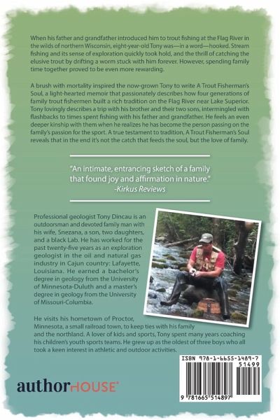 When his father and grandfather introduced him to trout fishing at the Flag River in the wilds of northern Wisconsin, eight-year-old Tony was-in a word-hooked. Stream fishing and its sense of exploration quickly took hold, and the thrill of catching the elusive trout by drifting a worm stuck with him forever. However, spending family time together proved to be even more rewarding. A brush with mortality inspired the now-grown Tony to write A Trout Fisherman's Soul, a light-hearted memoir that passionately describes how four generations of family trout fishermen built a rich tradition on the Flag River near Lake Superior. Tony lovingly describes a trip with his brother and their two sons, intermingled with flashbacks to times spent fishing with his father and grandfather. He feels an even deeper kinship with them when he realizes he has become the person passing on the family's passion for the sport. A true testament to tradition, A Trout Fisherman's Soul reveals that in the end it's not the catch that feeds the soul, but the love of family. "An intimate, entrancing sketch of a family that found joy and affirmation in nature." -Kirkus Reviews