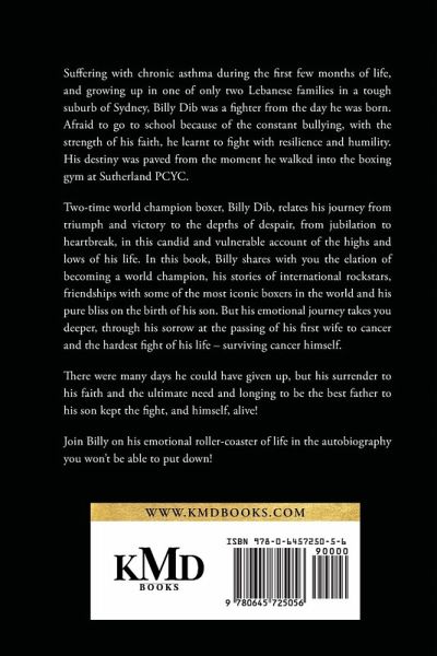 Suffering with chronic asthma during the first few months of life, and growing up in one of only two Lebanese families in a tough suburb of Sydney, Billy Dib was a fighter from the day he was born. Afraid to go to school because of the constant bullying, with the strength of his faith, he learnt to fight with resilience and humility. His destiny was paved from the moment he walked into the boxing gym at Sutherland PCYC. ¿ Two-time world champion boxer, Billy Dib, relates his journey from triumph and victory to the depths of despair, from jubilation to heartbreak, in this candid and vulnerable account of the highs and lows of his life. In this book, Billy shares with you the elation of becoming a world champion, his stories of international rockstars, friendships with some of the most iconic boxers in the world and his pure bliss on the birth of his son. But his emotional journey takes you deeper, through his sorrow at the passing of his first wife to cancer and the hardest fight of his life - surviving cancer himself. There were many days he could have given up, but his surrender to his faith and the ultimate need and longing to be the best father to his son kept the fight, and himself, alive! Join Billy on his emotional roller-coaster of life in the autobiography you won't be able to put down!