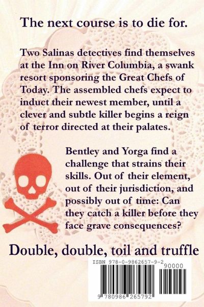 The next course is to die for. Detective Bentley and Sergeant Yorga find themselves at a resort during a culinary festival. The Inn at River Columbia is home to the Great Chefs of Today festival, where world renowned culinary artists intend to induct a new member into their number. But a clever killer with a deadly recipe may keep that from happening. Can Bentley and Yorga catch a murderer before his tricks lead to grave consequences?