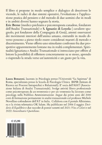 L'uomo di oggi, più che in passato, vive una condizione di frammentazione , di separazione sia nel rapporto con se stesso che nelle relazioni con gli altri. Le tre dimensioni: fisica, psichica e spirituale spesso sono vissute in modo scisso e isolato negando o rimuovendo la presenza ora dell'una ora dell'altra. I contenuti di questo libro si propongono di far dialogare il lettore con le proprie dimensioni grazie alla vita, alle idee, alle intuizioni e ai costrutti teorico metodologici di due uomini com Eric Berne e S Ignazio di Loyola che in secoli diversi e in ambiti distinti hanno lasciato un'impronta significativa nella storia.Il dialogo e' vita che stimola, se autentico, alla consapevolezza personale e sociale , aprendo nuove vie tutte da scoprire